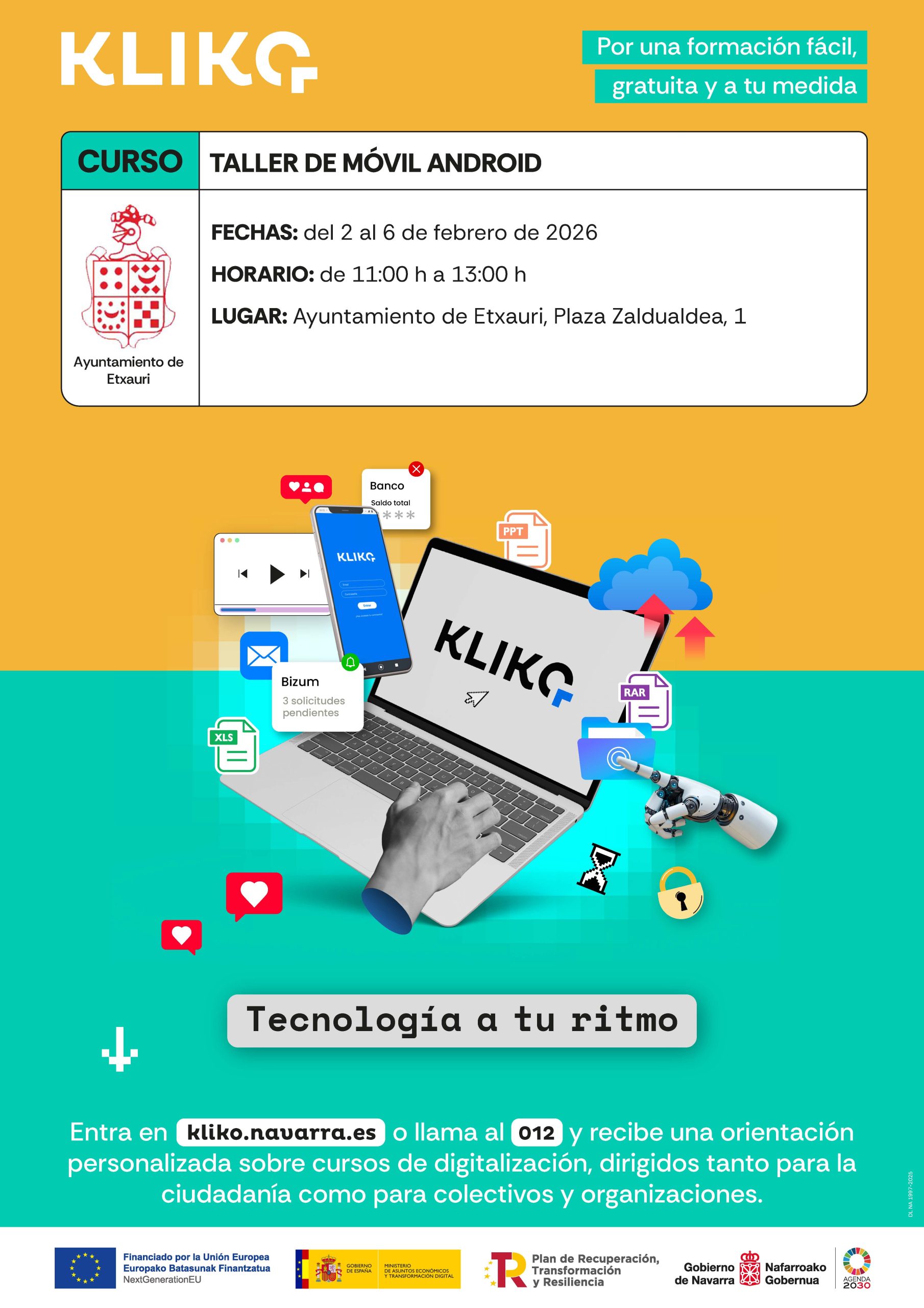 CURSO DE DIGITALIZACIÓN: TALLER DE MÓVIL ANDROID Idoia27/01/202627/01/2026 Agenda. ¡¡APÚNTATE!! 💻 https://kliko.navarra.es/es/ 📲012