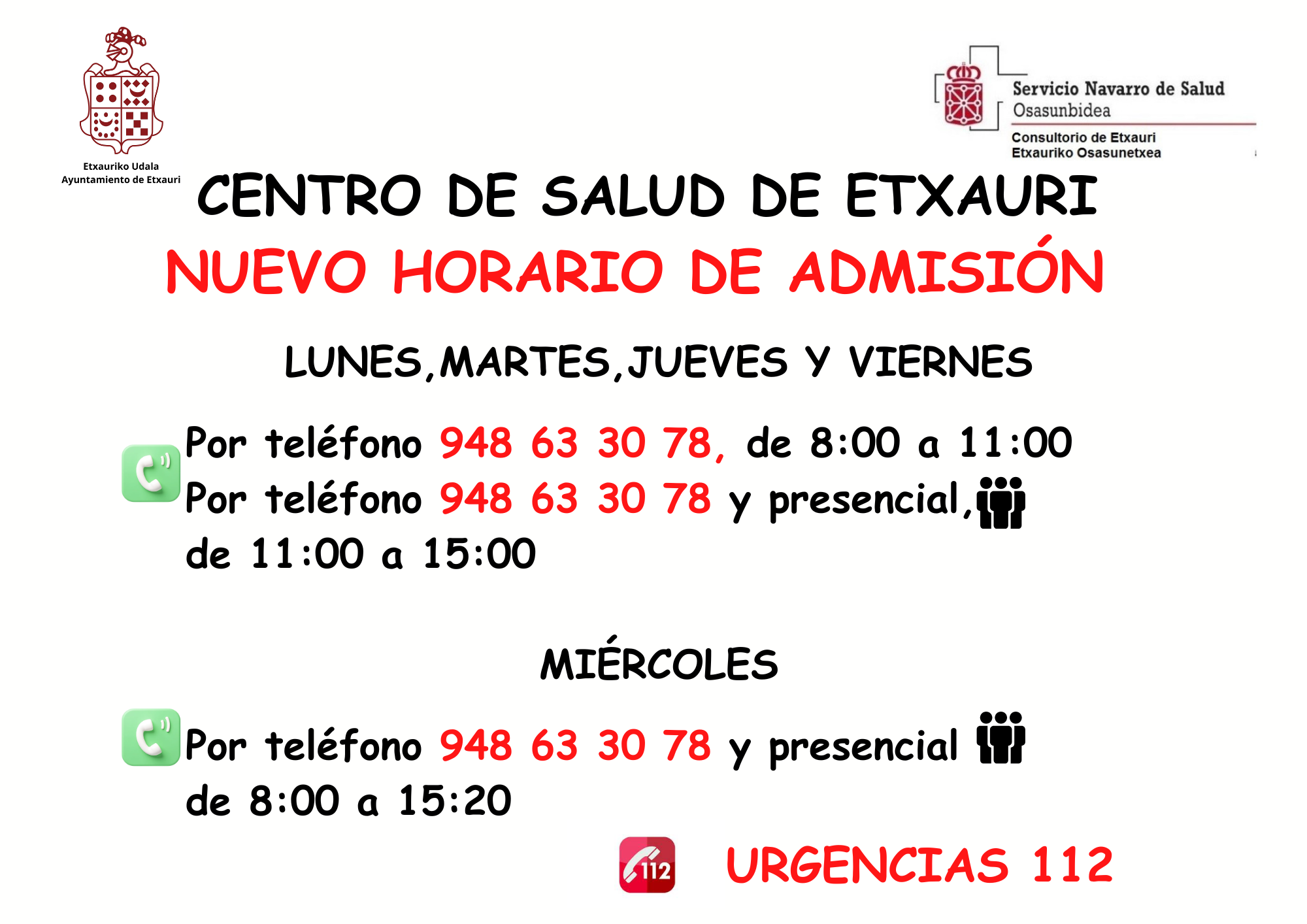 NUEVO HORARIO ADMISIÓN CENTRO SALUD ETXAURI (a partir del 13/04/2026) Idoia14/04/202614/04/2026 Agenda.
