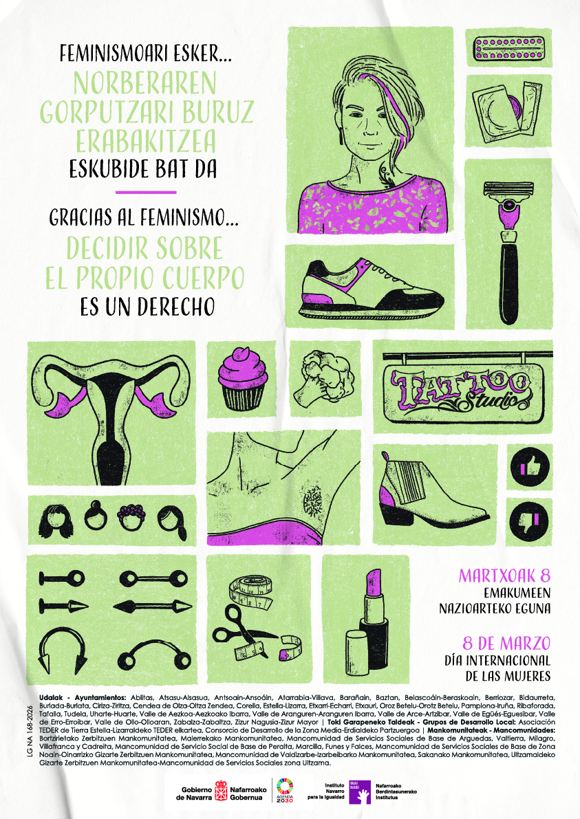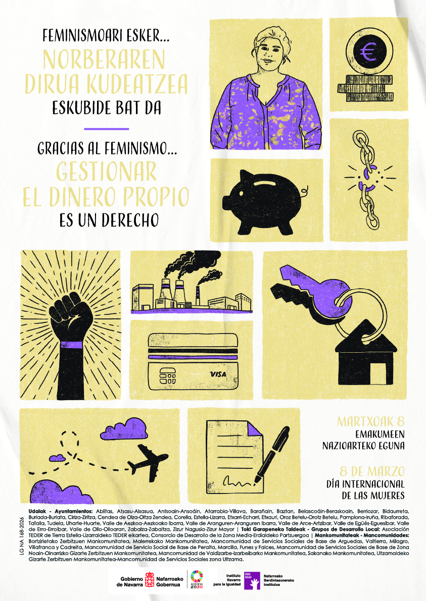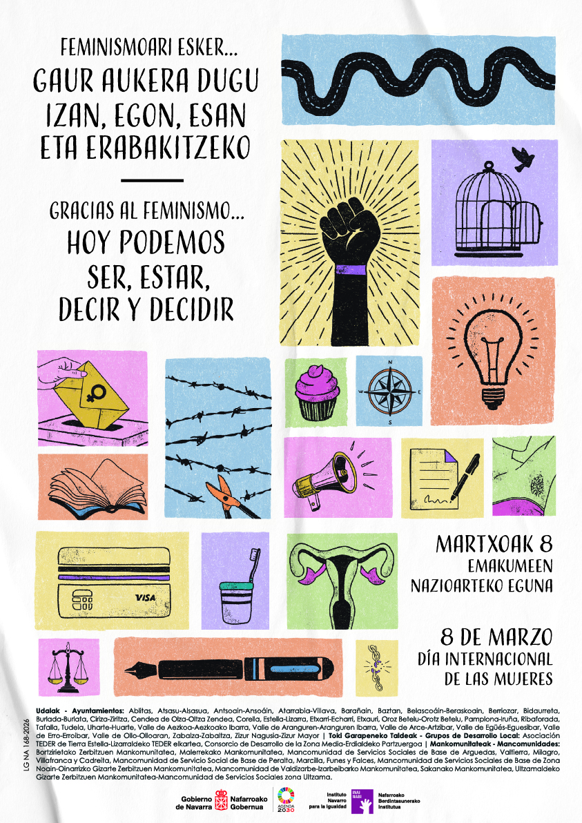 “Desigualdad real, justicia pendiente” es el lema de la campaña conjunta impulsada por varias Entidades Locales de Navarra con motivo del 8 de marzo, Día Internacional de las Mujeres.