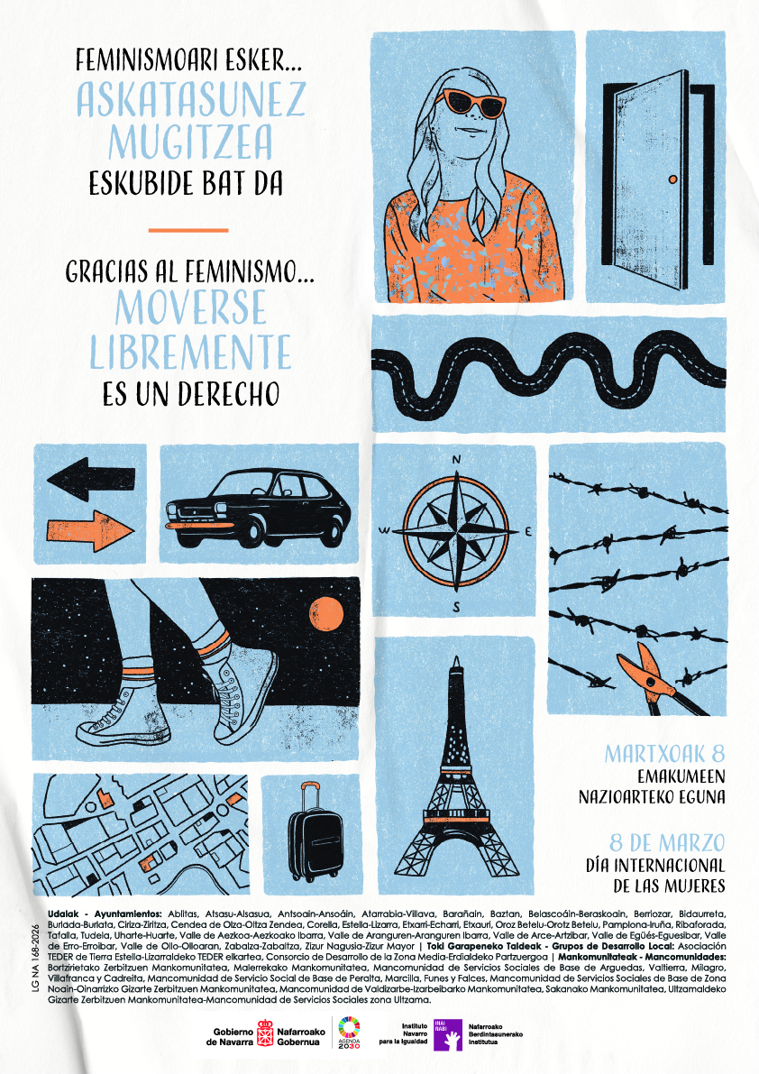 “FEMINISMOARI ESKER… GAUR IZAN, EGON, ESAN ETA ERABAKI DEZAKEGU” da Nafarroako hainbat Toki Entitatek aukeratutako leloa Martxoak 8, Emakumeen Nazioarteko Eguna dela eta.